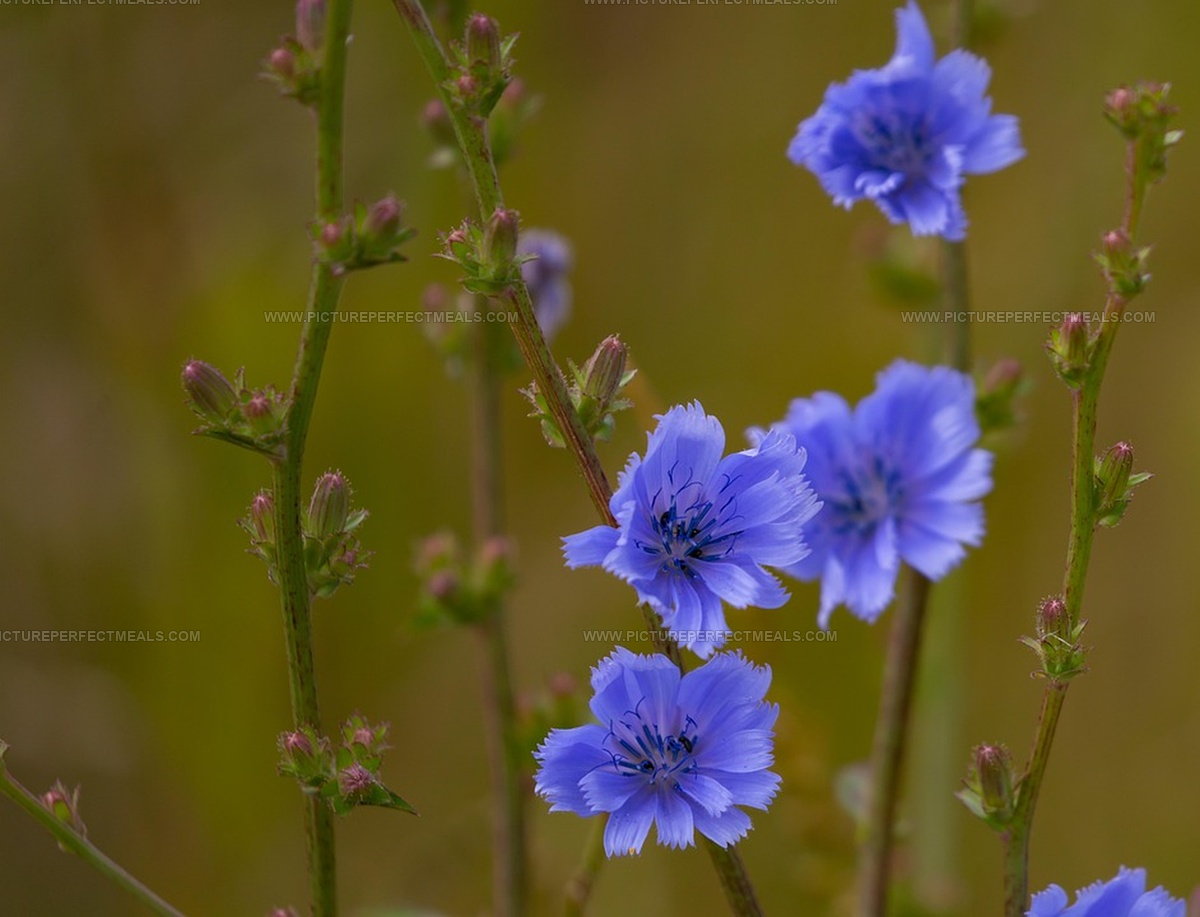 Chicory belongs to the dandelion family, showing up as a woody, leafy plant.