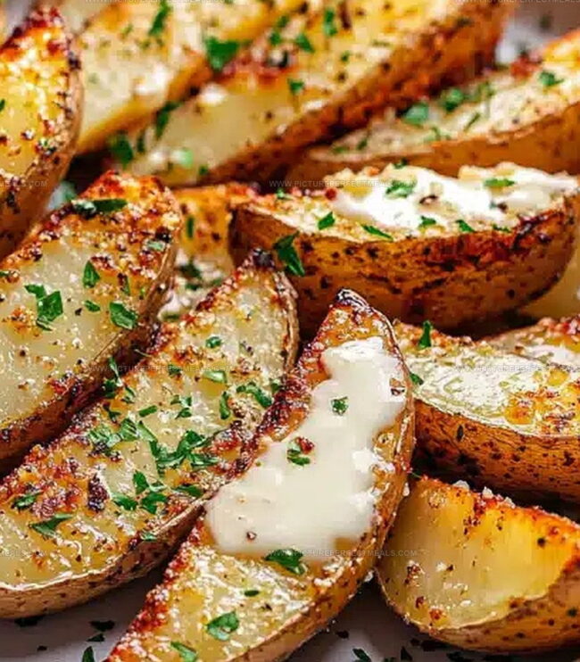Scatter some fresh parsley on top. Plate these delectable wedges with your favorite dipping sauce like ranch or zesty garlic aioli. Dive in while they’re hot and crispy!