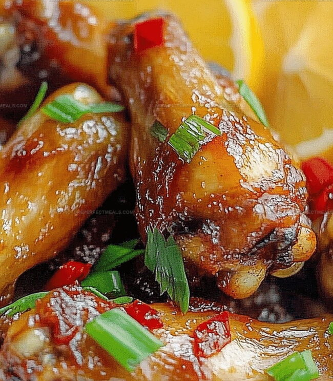 - Plate wings on a serving platter, embellishing with chopped cilantro, delicate green onion slices, and a sprinkle of sesame seeds for added texture and visual appeal.