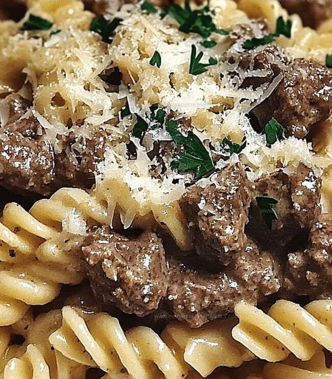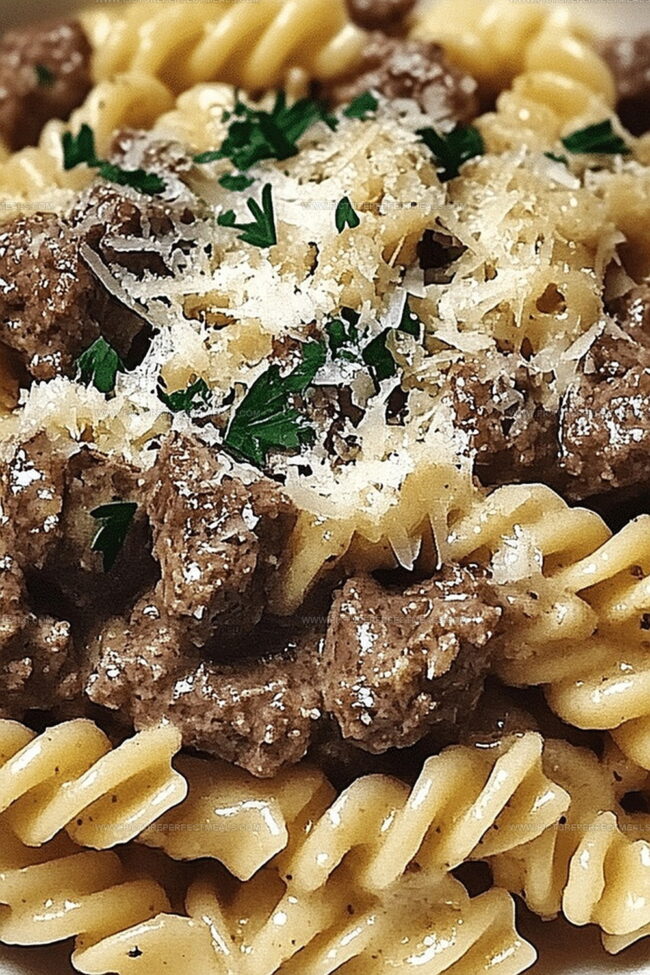 Hearty Beef and Rotini in Garlic Parmesan Sauce Recipe