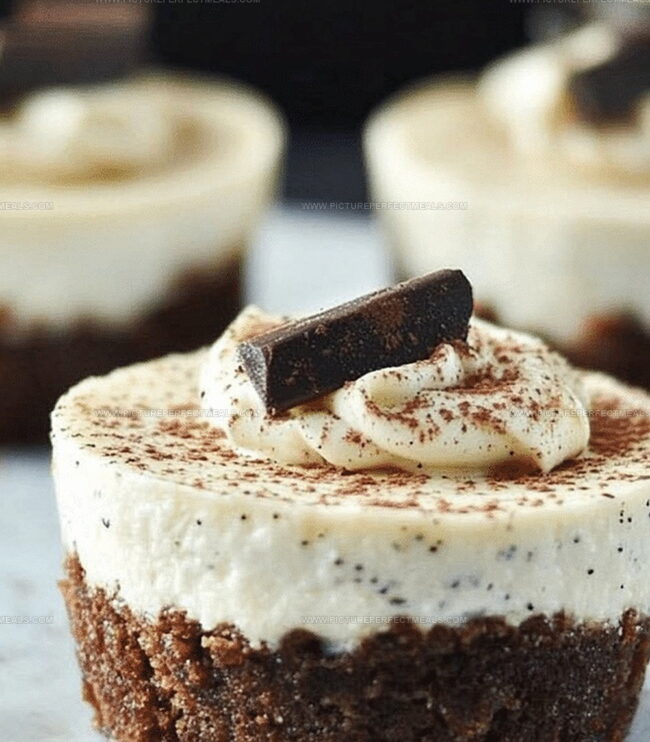 Silky Baileys mini cheesecakes deliver pure indulgence with creamy Irish cream-infused layers of bliss. Chocolate cookie crusts and smooth cream cheese create a luxurious dessert that will delight any sweet craving.