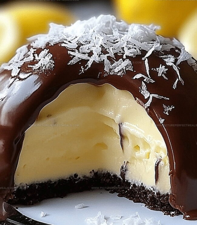 Silky chocolate lemon mousse dome blends luxurious French patisserie techniques with Mediterranean citrus brightness. Elegant dessert layers promise rich chocolate depths and zesty lemon notes, creating a sophisticated palate experience you’ll savor with delightful complexity.