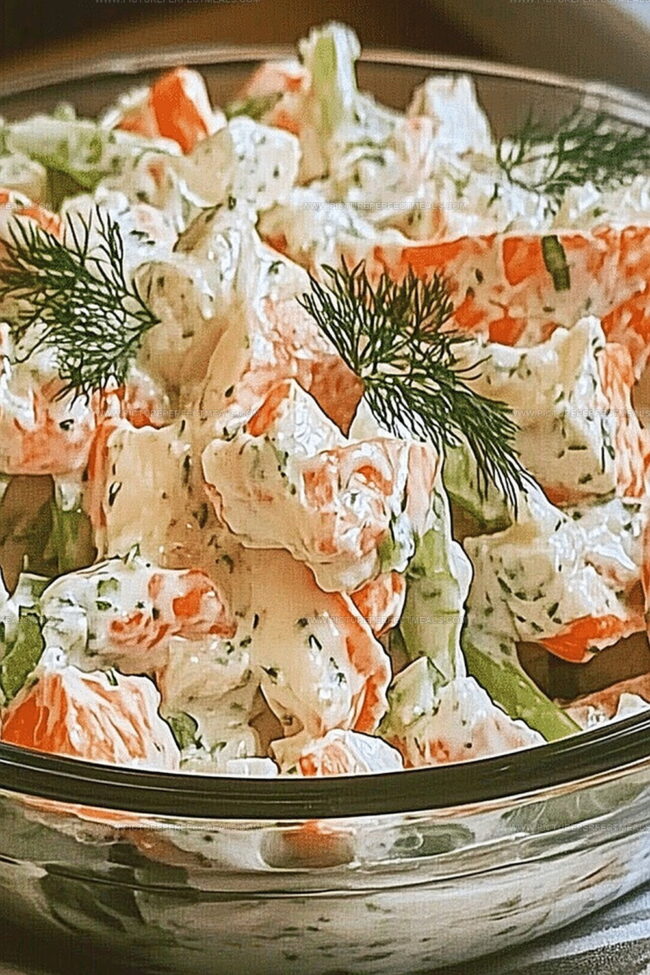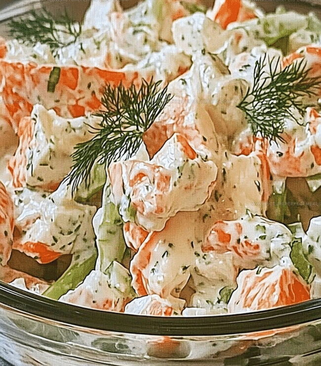 Irresistible Coastal “Crab Salad” blends fresh seafood with crisp vegetables, creating a light and refreshing summer dish. Delicate crab meat mingles with zesty herbs, promising a delightful Mediterranean-inspired experience you’ll savor with each cool, delectable bite.
