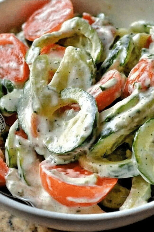 Cool summer nights call for Creamy Cucumber Tomato Salad, a refreshing Mediterranean-inspired dish that blends crisp vegetables with a tangy dressing. Signature herbs and creamy texture make this salad perfect for backyard gatherings where you’ll enjoy each delightful bite.