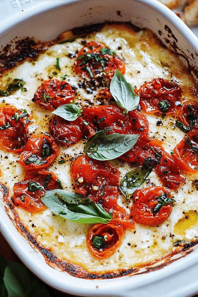 - Final Assembly: Remove the baked cheese from the oven and generously crown it with the prepared bruschetta topping, generating a striking color and flavor contrast.