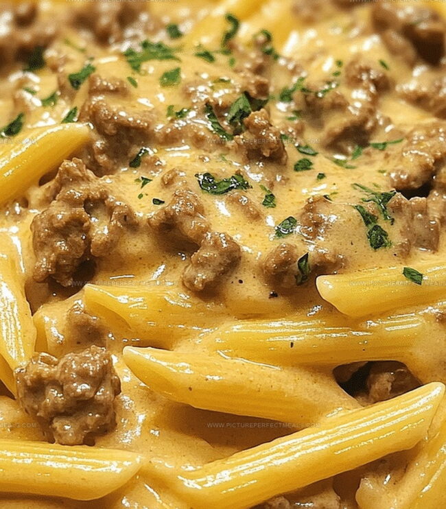 Pasta and Protein:Dairy and Cheese Components:Flavor Enhancers:Liquid and Seasoning Ingredients:Cooking and Binding Components:Garnish:Seasoning:How to Bring Together Creamy Beef and Penne