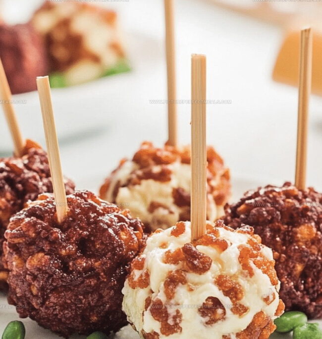 Savory cheese ball bites bring classic party appetizers into convenient, poppable portions. Creamy cheeses, herbs, and crunchy nuts create irresistible finger-friendly treats perfect for sharing when you want crowd-pleasing snacks.