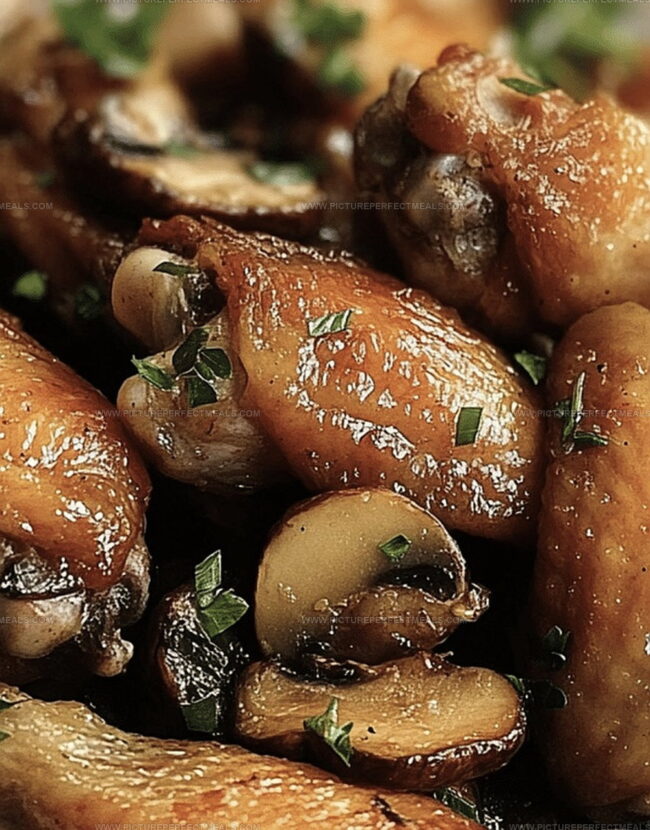 - Serving: Plate immediately while hot, presenting a harmonious blend of crispy chicken wings and savory mushrooms.