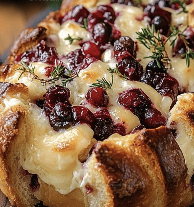 Finishing Touch: Remove from oven and let rest briefly. Sprinkle freshly chopped rosemary over the bread for aromatic enhancement. Serve warm, inviting guests to pull apart sections and experience the harmonious blend of melted cheese and tangy cranberry compote.