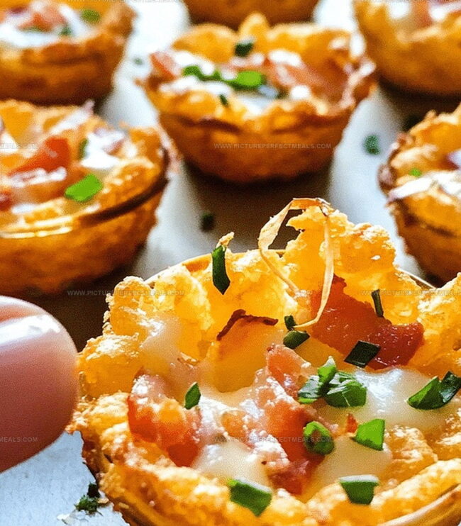- Create Perfect Cups: Press tater tots gently and use the back of a spoon to shape crispy edges, creating sturdy and uniform appetizer vessels.