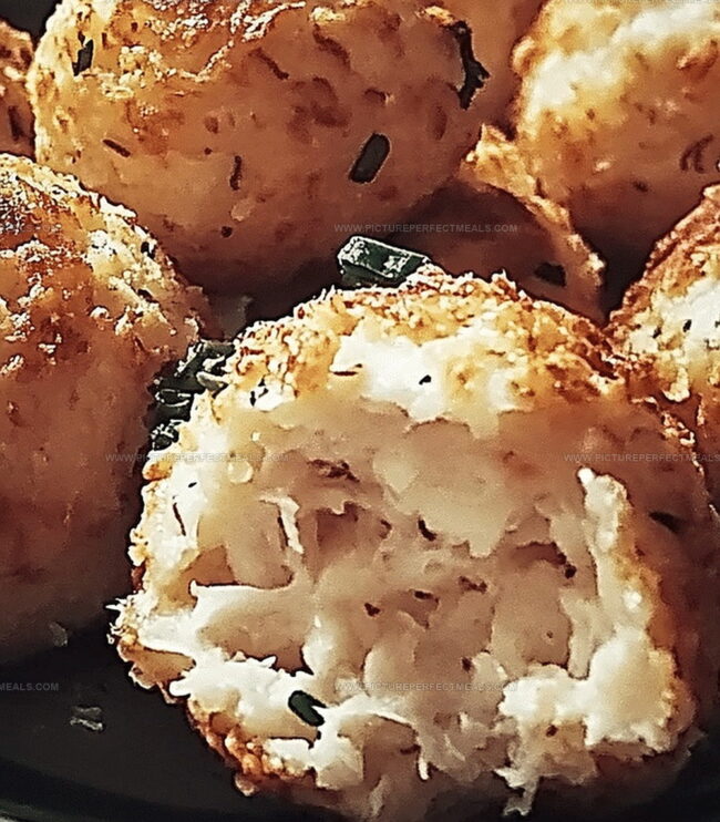 Delightful white tuna balls showcase Mediterranean culinary magic with simple ingredients. Crispy exterior and creamy center promise a memorable seafood experience you’ll savor with each delectable bite.
