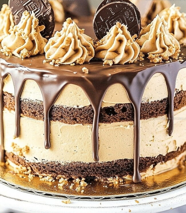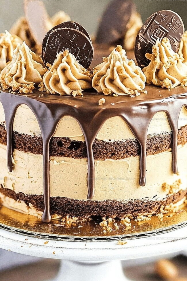 Classic peanut butter chocolate layer cake delivers rich, indulgent flavors from smooth chocolate layers and creamy peanut butter frosting. Rich dessert delights chocolate and peanut butter enthusiasts with its balanced, irresistible combination.