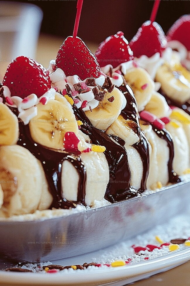 Indulgent banana split sundae combines classic ice cream parlor nostalgia with creamy layers of flavor. Sweet bananas and rich toppings create a delightful dessert experience you can savor with pure summer joy.