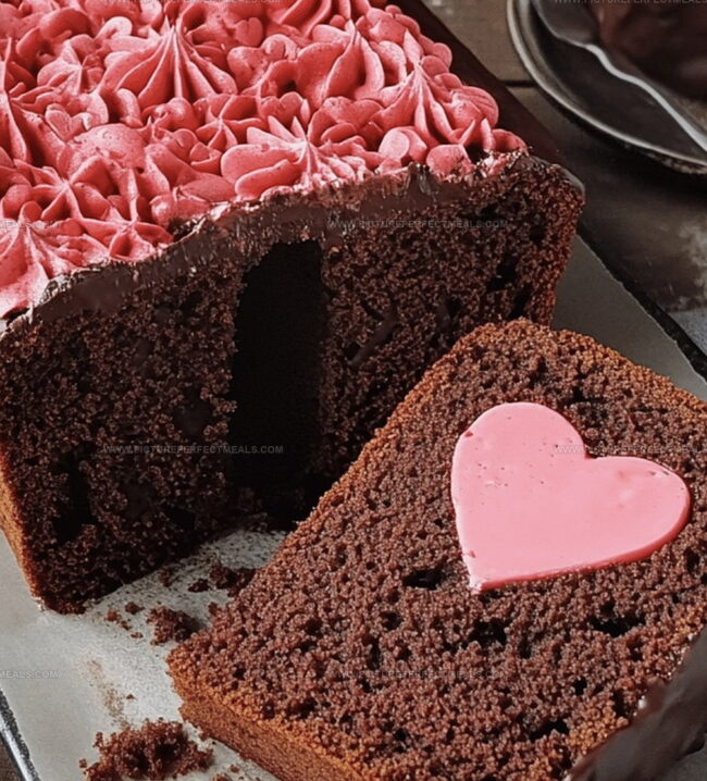 Delightful hidden heart chocolate loaf cake reveals a surprising love-themed center when sliced. Rich chocolate batter and tender crumb showcase a sweet surprise that will charm dessert enthusiasts and romantic bakers alike.