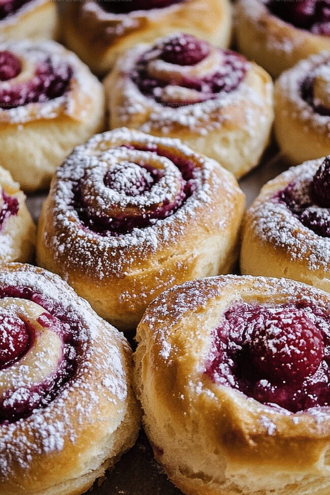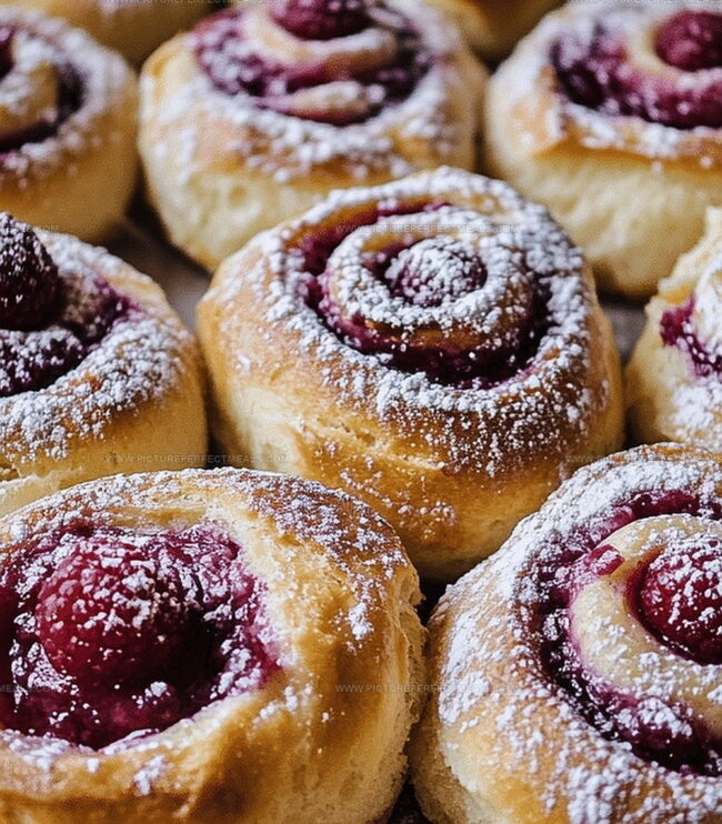 - Filling and Shaping: Extend the dough into a rectangular canvas, lavishing it with butter and brown sugar. Scatter frozen raspberries across the sweetened surface. Roll into a compact log, then segment into twelve precise portions.