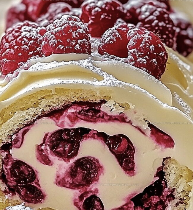 Luscious raspberry white chocolate cake roll showcases delicate Swiss pastry artistry with silky cream and tangy fruit. Elegant layers of delicate sponge and creamy filling promise pure dessert bliss you won’t forget.