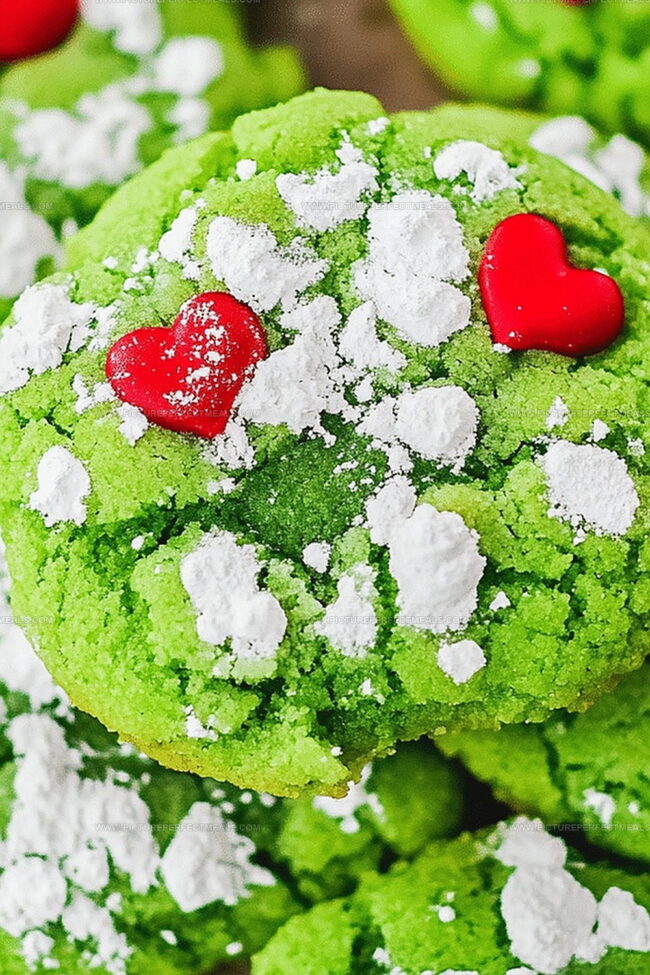 - Decorative Touch: Nestle a crimson heart-shaped sprinkle into the center of each dough ball, adding a whimsical Grinch-inspired detail that transforms simple cookies into playful works of art.