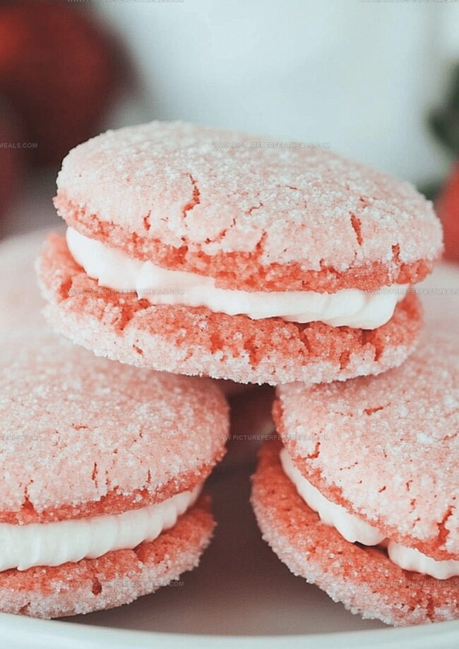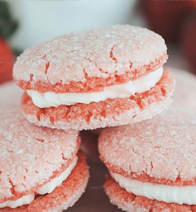 Sweet strawberry cake mix sandwich cookies blend classic dessert nostalgia with convenient ingredients. Creamy filling nestled between two delicate pink cookies offers delightful homemade comfort you can quickly enjoy.