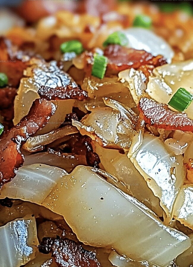 Crispy bacon adds incredible depth to this fried cabbage recipe that transforms a humble vegetable into a mouthwatering side dish.