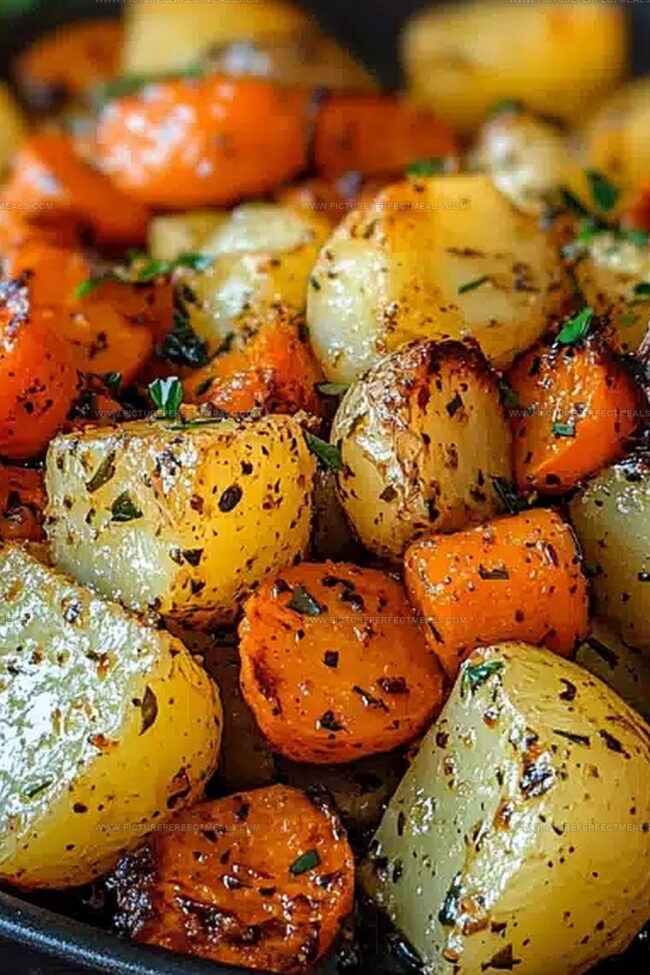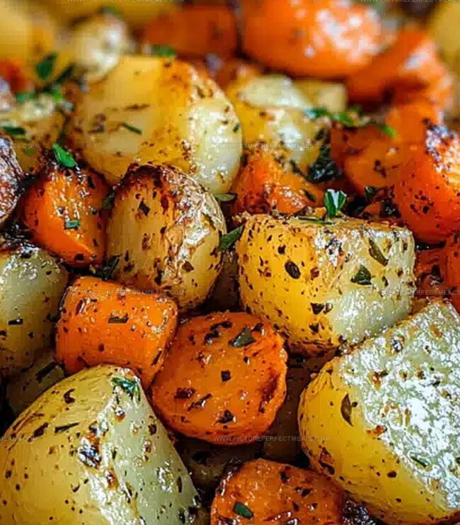 Savory Golden Garlic Herb Roasted Potatoes, Carrots, Zucchini Recipe