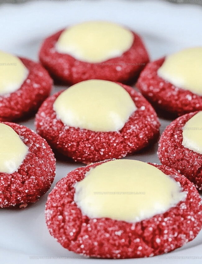 PrintHeavenly Red Velvet Thumbprint Cookies With Cream Cheese Recipe