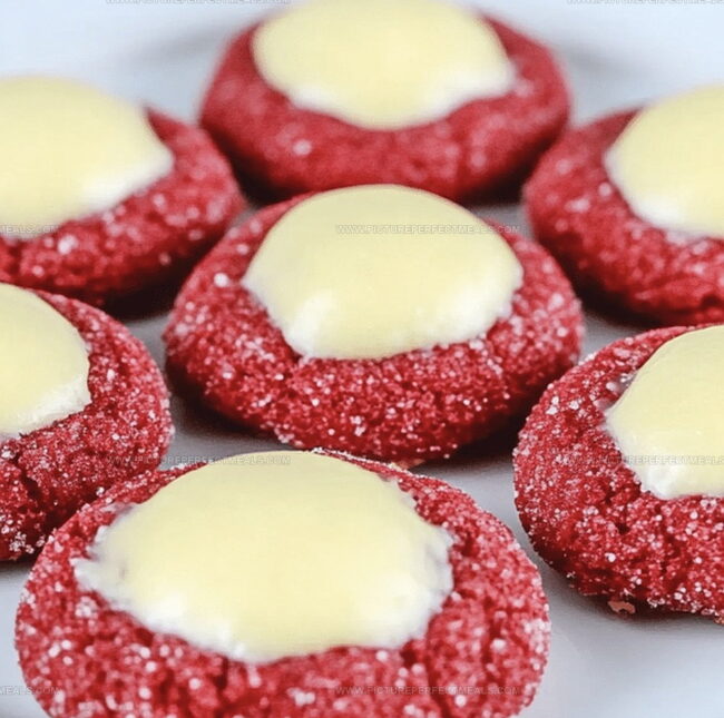 Red velvet thumbprint cookies with cream cheese bring classic Southern charm to holiday dessert tables. Rich cocoa-infused cookies cradle silky cream cheese filling, offering a delightful twist you’ll savor with each delectable bite.