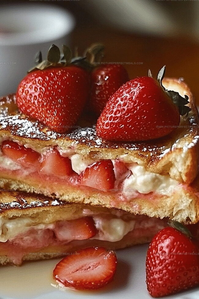 Sweet mornings start with this delectable strawberry cheesecake stuffed french toast that promises pure breakfast bliss.