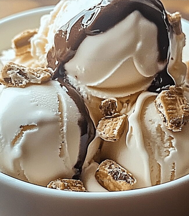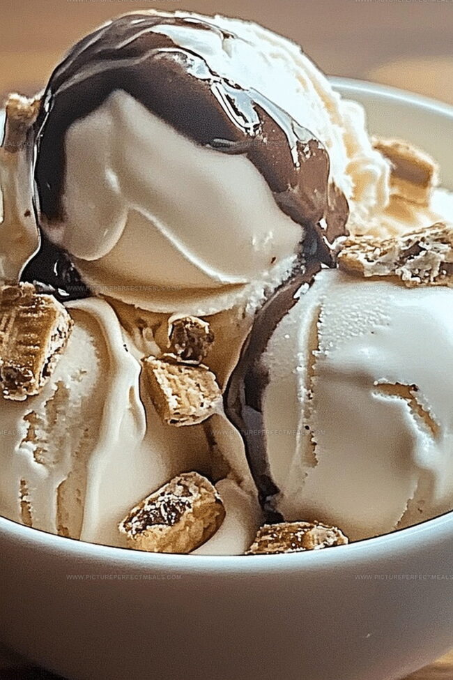 Sweet cream blends with rich chocolate ribbons and peanut butter cups, creating an irresistible treat.