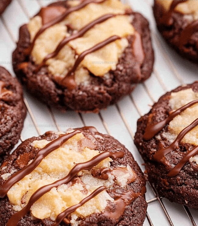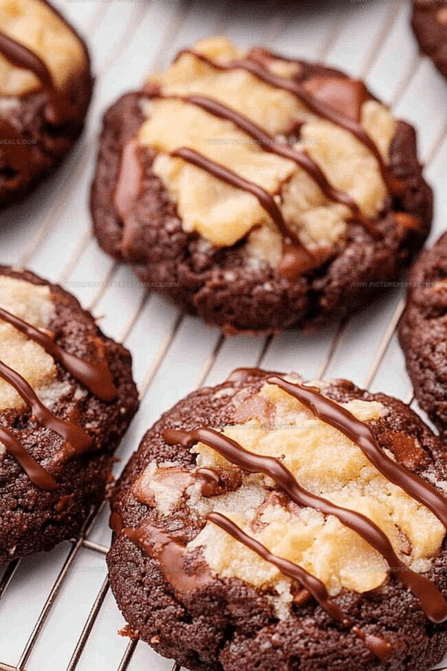 - Final Assembly: Once cookies have cooled, generously spread the coconut-pecan frosting on top. Melt chocolate chips with coconut oil until smooth, then drizzle elegantly over frosted cookies using a spoon or piping tool. Allow chocolate to set completely before serving.
