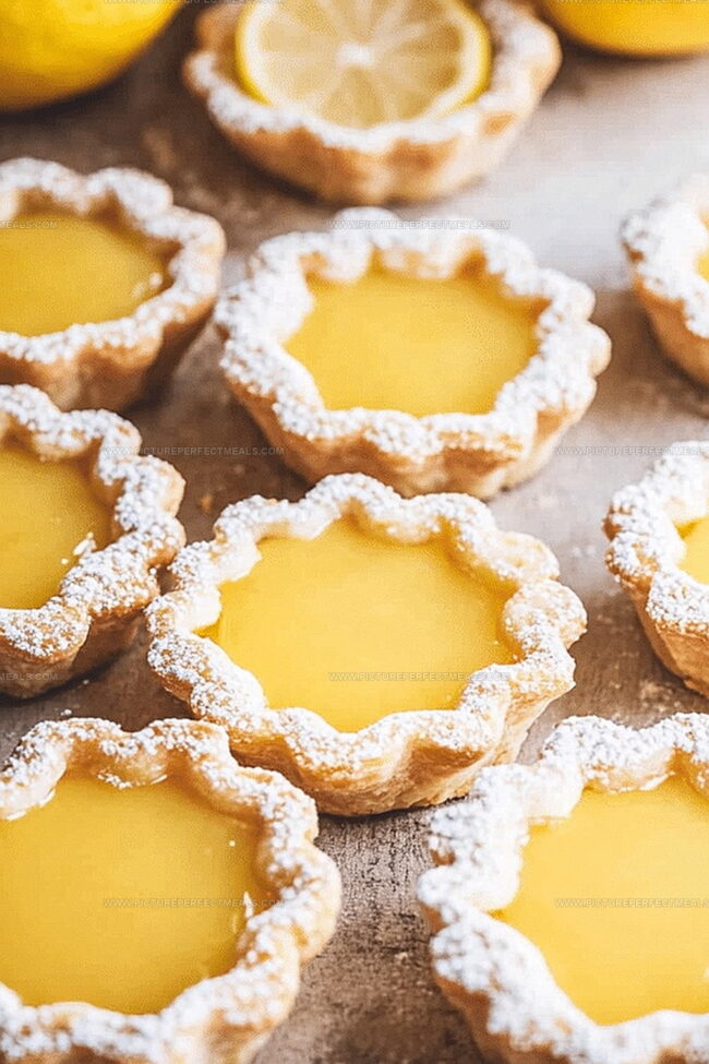 Creamy lemon curd bursts with zesty flavors in these delightful tartlets that promise a sweet adventure.