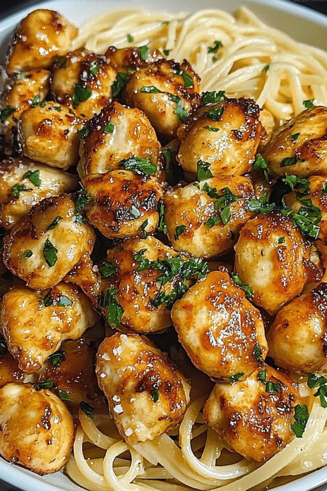 Lemon Garlic Butter Chicken Bites with Savory Parmesan Linguine