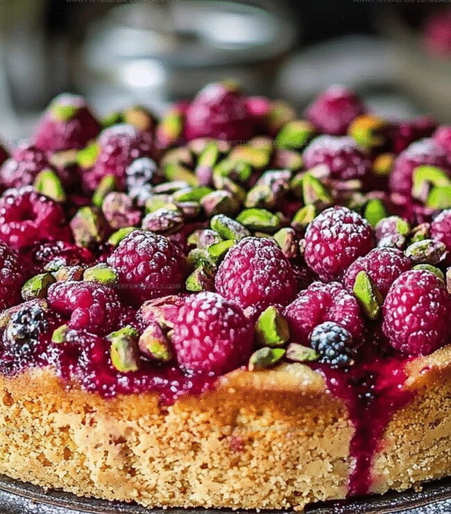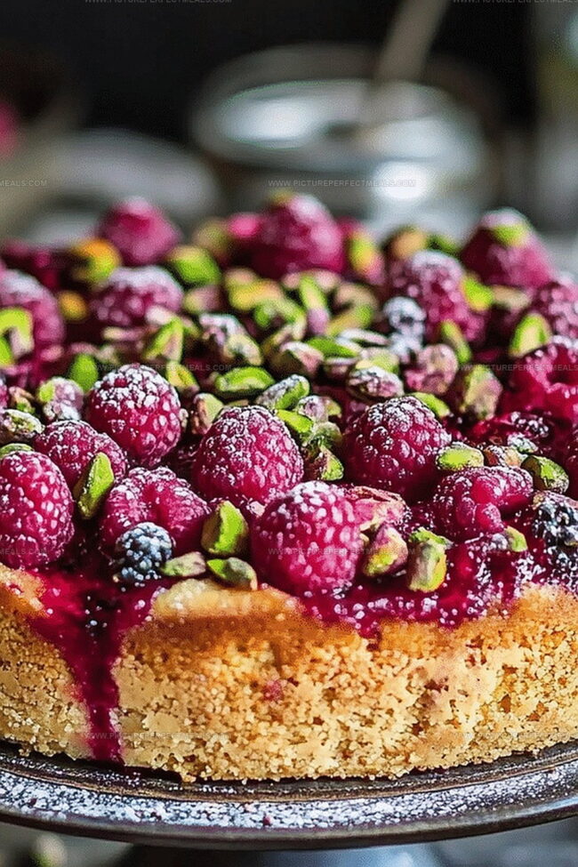 Elegant Dessert Plate: Dust the cake with powdered sugar and garnish with fresh raspberries and chopped pistachios for a stunning presentation that highlights the cake’s beautiful colors and textures.