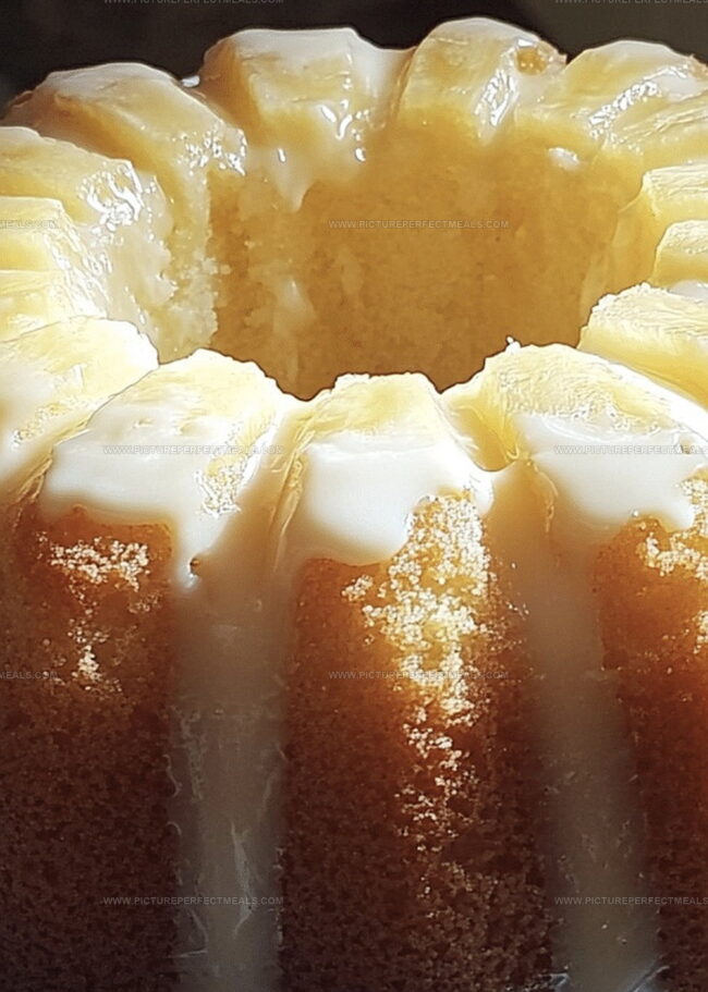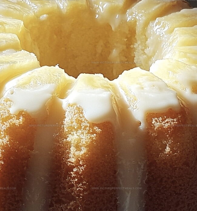 Let the cake rest in the pan for 10 minutes. Flip onto a wire rack and let it cool completely. Whisk together powdered sugar, pineapple juice, and vanilla to create a silky glaze.