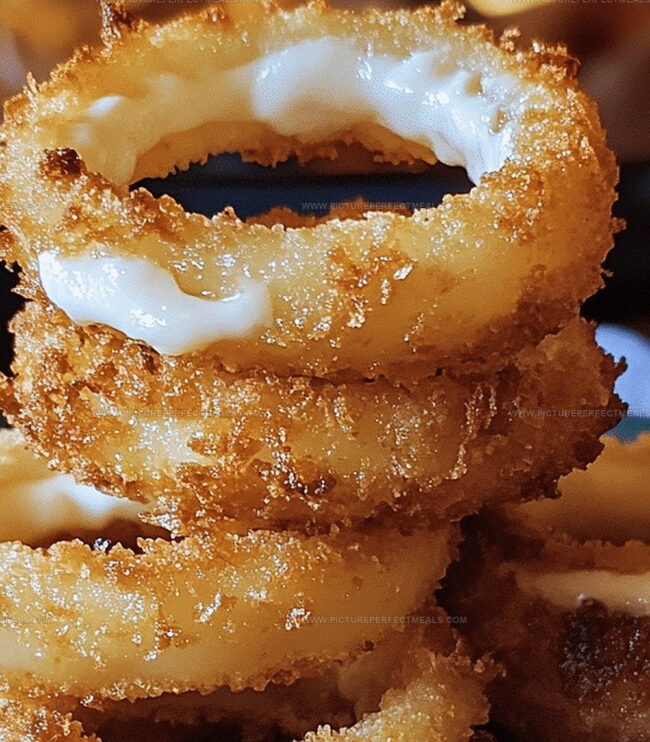 Spicy Mexican-Style Rings: Add chili powder and cayenne to breading mixture. Include finely shredded pepper jack cheese inside rings. Serve with fresh salsa or chipotle dipping sauce for extra kick.