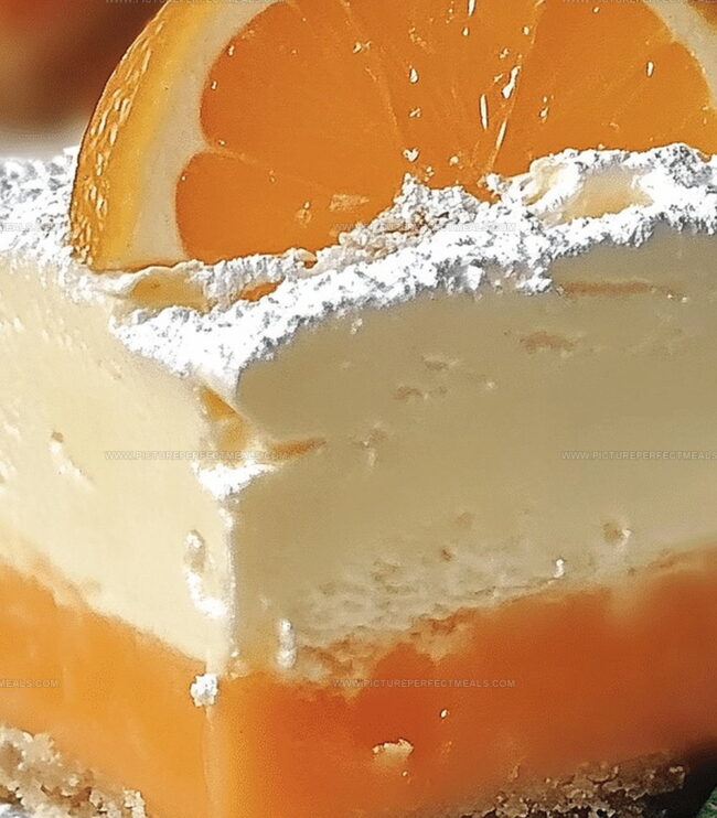 Creamy orange creamsicle cheesecake bars blend nostalgic summer flavors with rich, tangy cream cheese. Cool citrus notes and graham cracker crust create a dreamy dessert that transports senses to childhood memories, tempting you to savor each delightful bite.