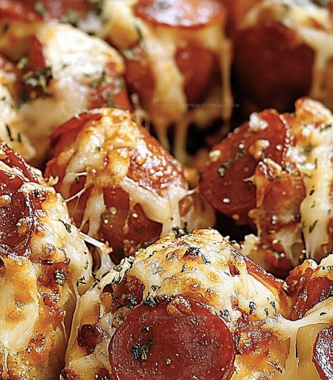 Each bite delivers a perfect balance of herbs, gooey cheese, and savory pizza ingredients.