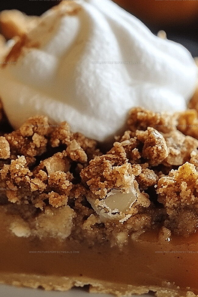 Layers of sweet pumpkin beneath a crunchy topping promise pure deliciousness in every single bite.