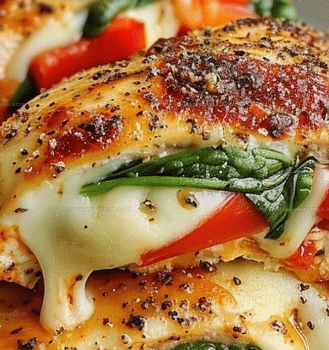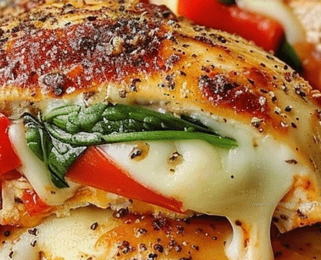 Succulent roasted red pepper, spinach, and mozzarella stuffed chicken brings Italian-inspired flavors to dinner tables with elegant simplicity. Each juicy bite delivers a perfect harmony of melted cheese, tender greens, and sweet pepper nestled inside perfectly seasoned chicken breast.