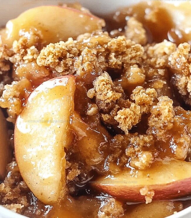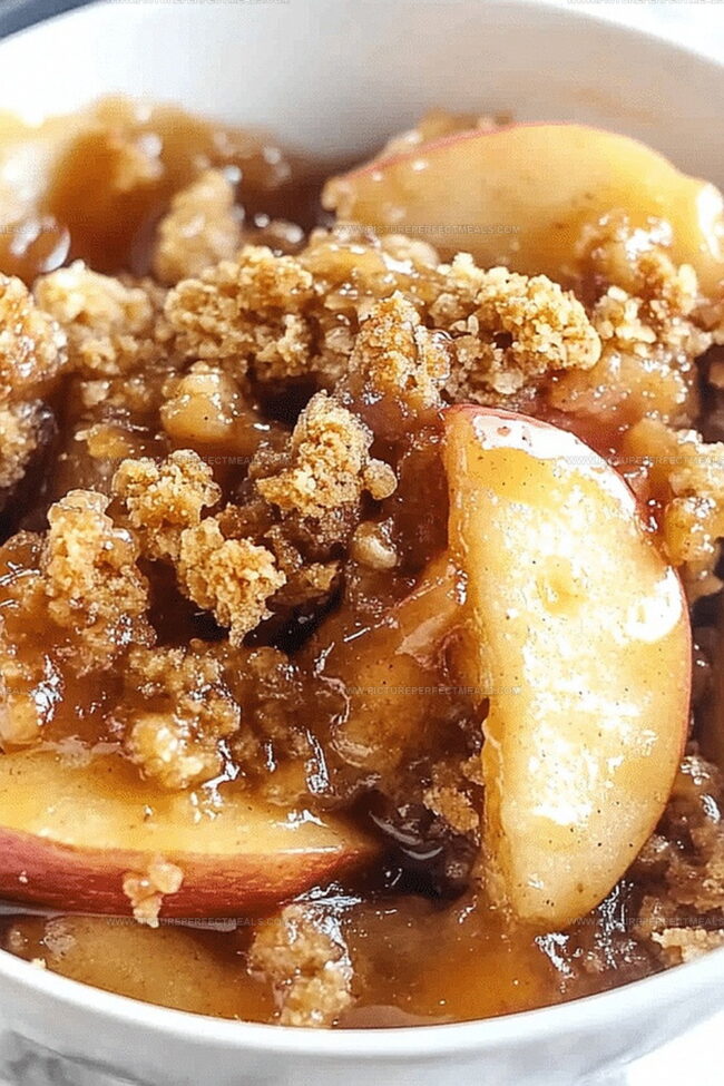 Fresh, ripe apples meld perfectly with a crispy, golden-brown topping that adds delightful texture and crunch.