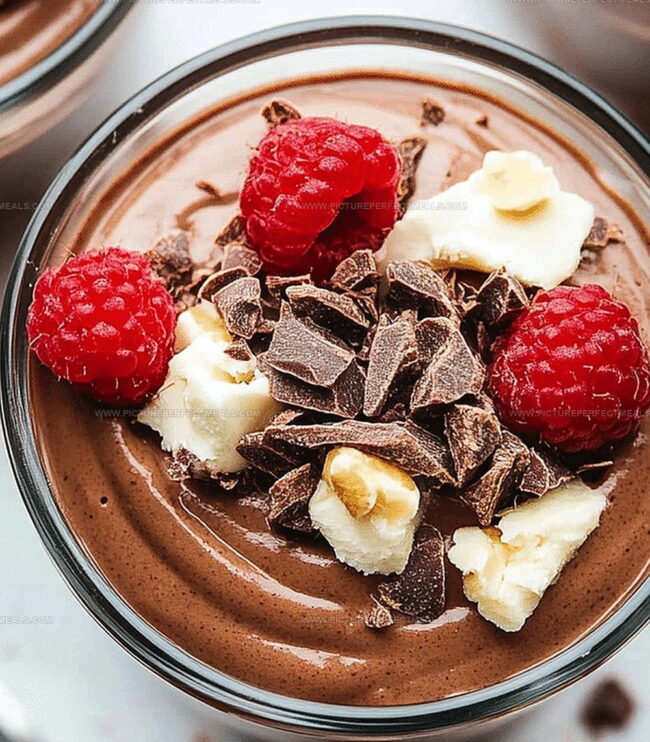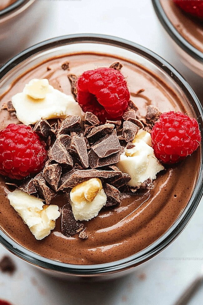 Chocolate Indulgence Garnish: Sprinkle rich dark chocolate shavings or cocoa nibs on top for an elegant, luxurious touch that adds delightful texture and intense chocolate flavor.