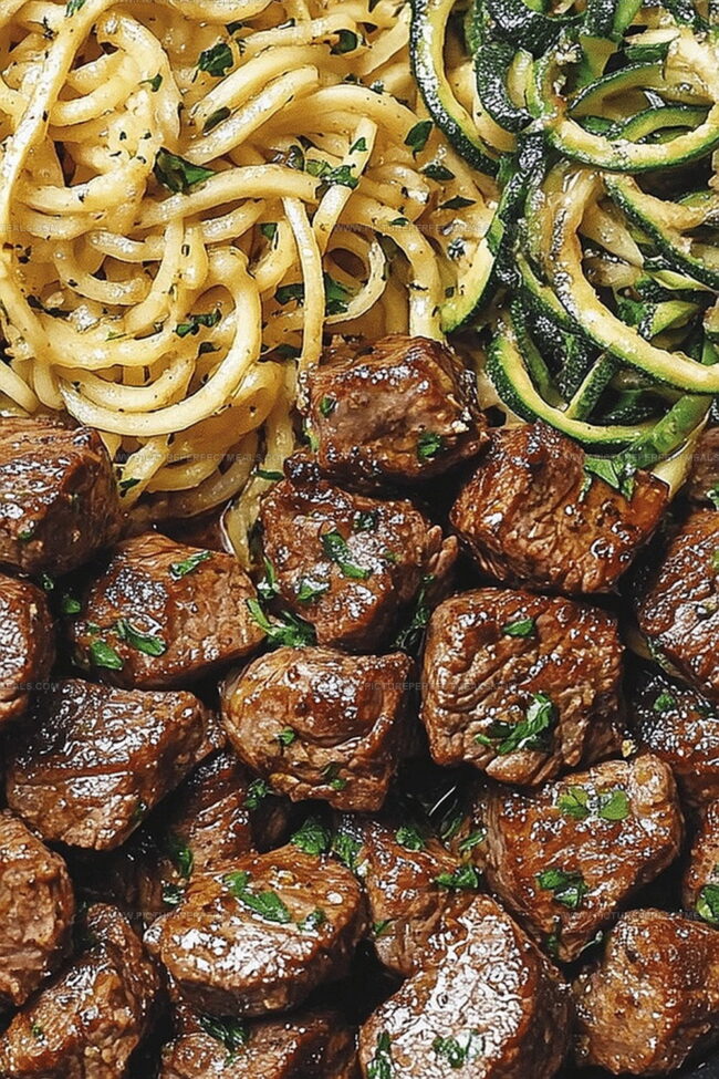 Juicy Garlic Butter Steak Bites with Lemon Zucchini Noodles Recipe