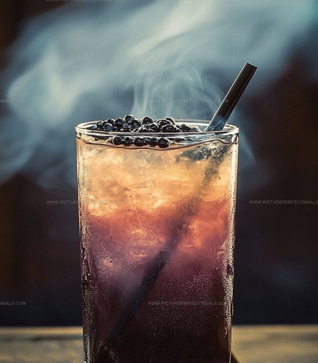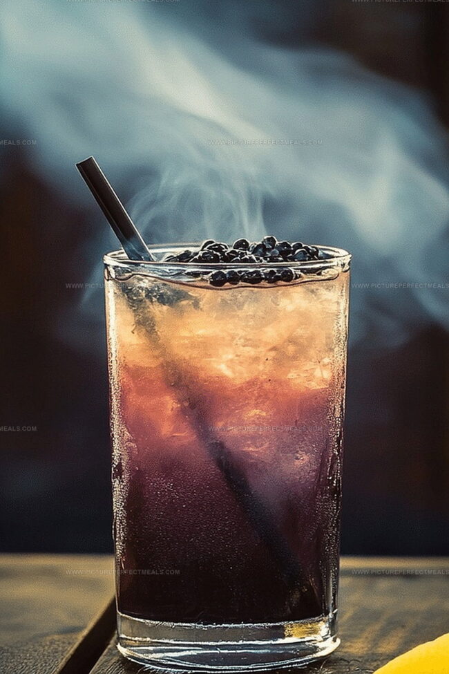 Smoke on the Water cocktail blends smoky mezcal with bold blackberry and herbal notes for a complex drinking experience. Balanced ingredients create a sophisticated sip that lingers with intrigue, drawing you into its mysterious flavor profile.