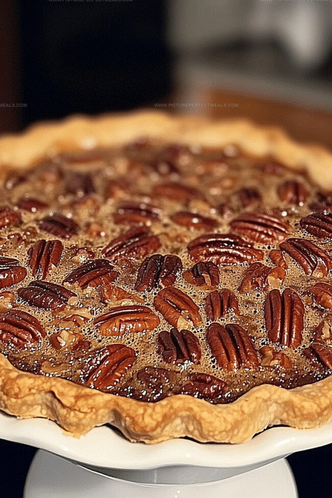 Clusters of glossy pecans nestle into a silky, caramel-like filling that promises indulgence in every slice.