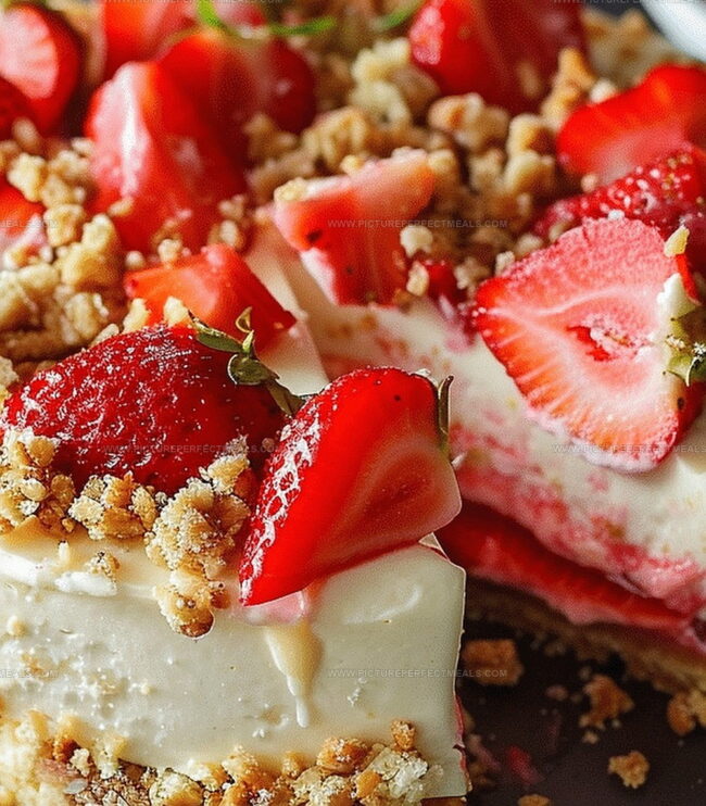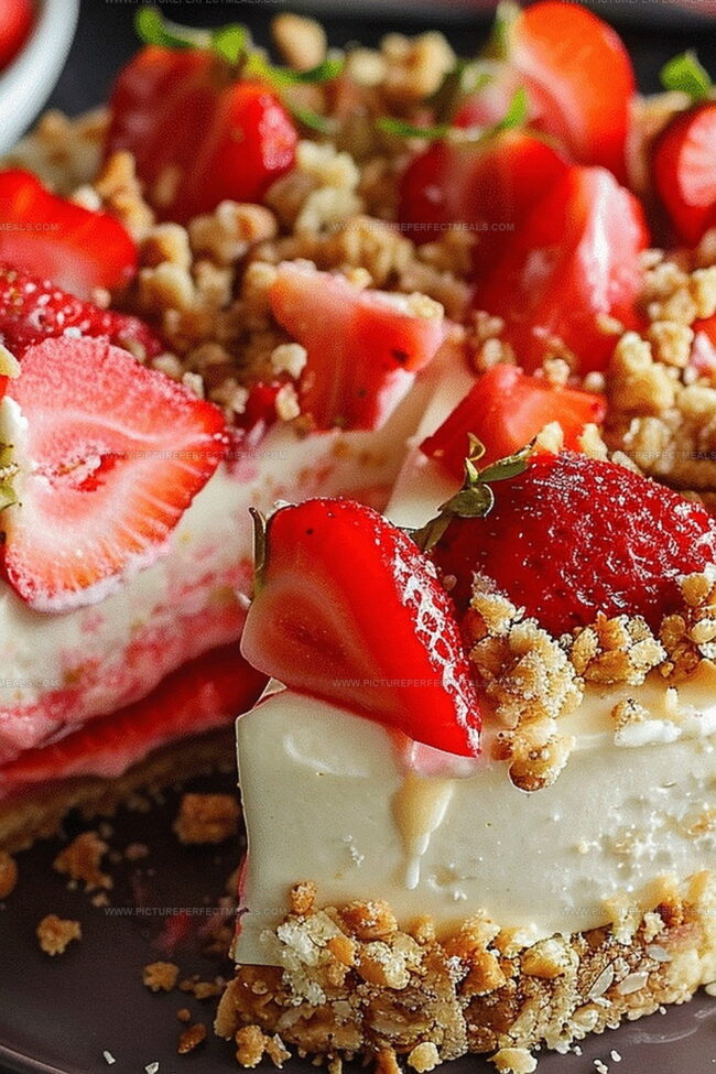 Strawberry Crunch Cheesecake That’s Bursting with Texture and Flavor