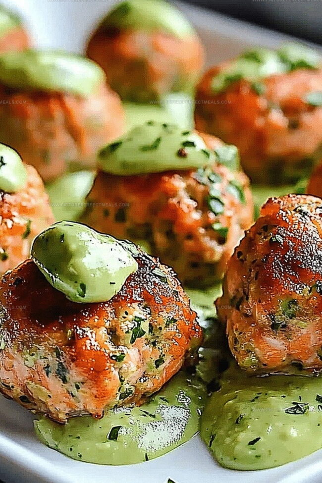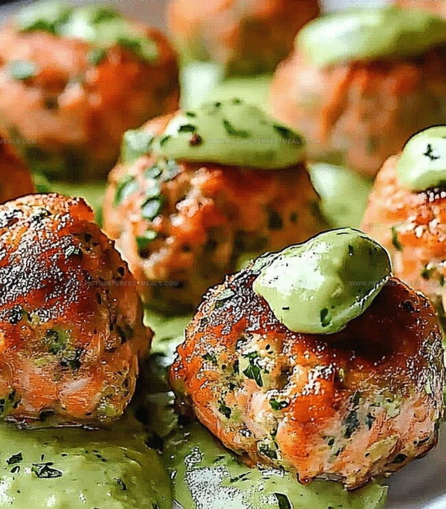 These tender, omega-3 packed salmon meatballs merge Mediterranean zest with creamy avocado sauce.