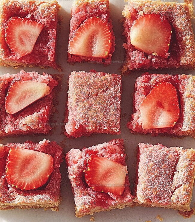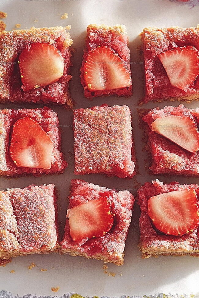 Irresistible strawberry rhubarb shortbread bars blend sweet and tangy flavors in a delightful dessert. Crumbly buttery crust and jewel-toned fruit filling create a perfect summer treat that satisfies dessert cravings.