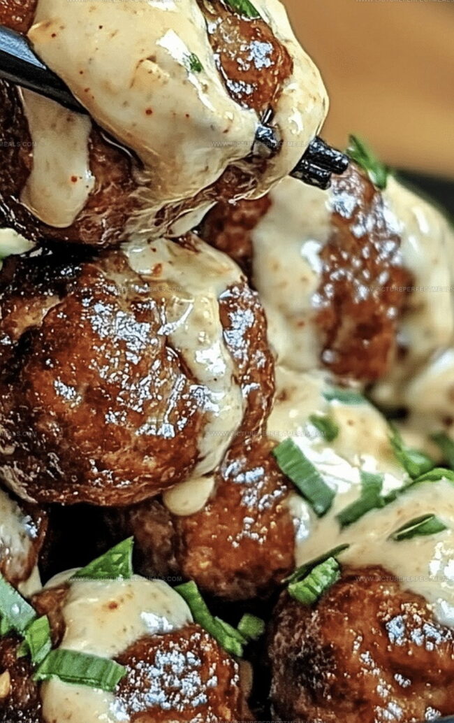 - Presentation: Arrange glazed meatballs on an elegant platter, adorning with toasted sesame seeds and delicately chopped green onions for visual and flavor complexity.