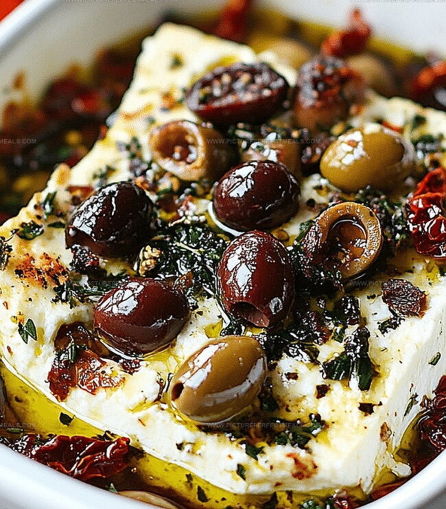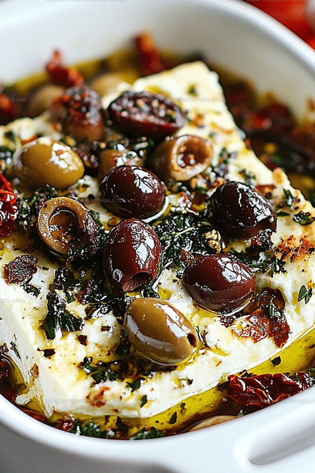 Mediterranean baked feta with olives and sun-dried tomatoes delivers a rich, tangy flavor profile straight from Greek cuisine. Cheese melts luxuriously alongside briny olives, creating a simple yet elegant appetizer you’ll savor with crusty bread.