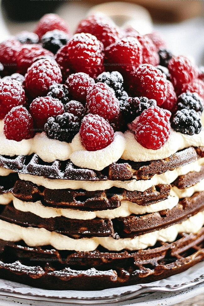 Irresistible Belgian waffle cake blends breakfast comfort with dessert elegance, promising a delightful culinary adventure. Crisp layers and sweet cream invite you to savor each indulgent bite of this memorable treat.
